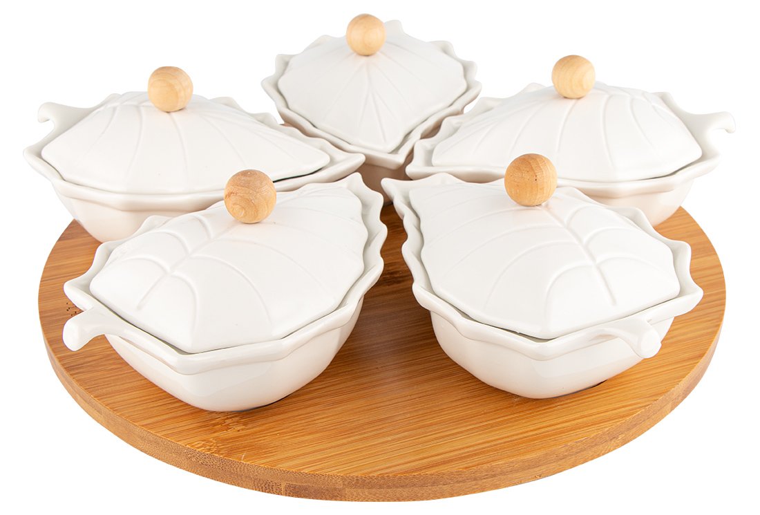 Livraison et dimensions: 1x ensemble de bols de rêve Bol à collation petit-déjeuner 6 pièces avec couvercle | Porcelaine de bambou | Par-alz-p180249