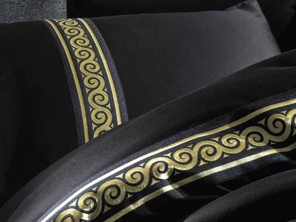 Informations sur le produit "Ensemble de housse de couette double Cottonbox Brode Satin Royal Noir"