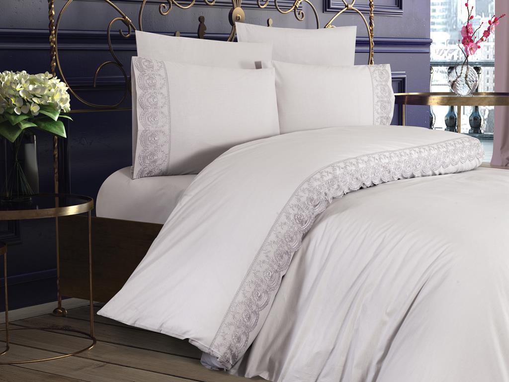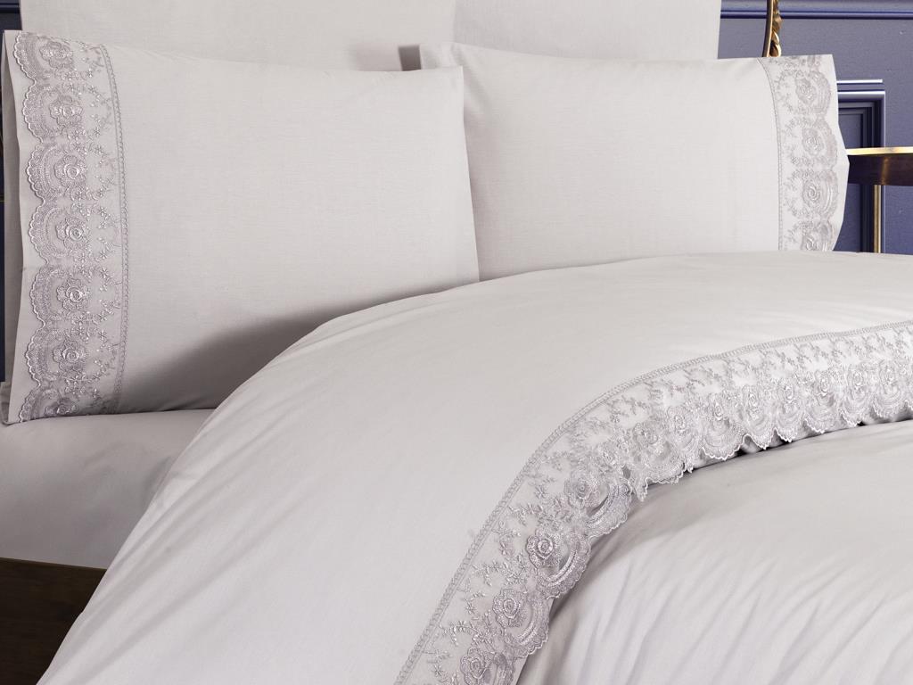 Un design spécial a été créé en cousant de la guipure française sur la housse de couette.
