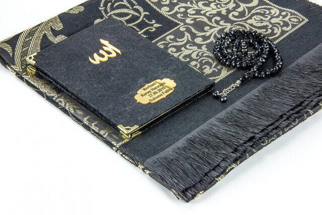 Ensemble de maman unique - livre de Yasin recouvert de velours - format de poche - plaque spéciale nom - tapis de prière - Tesb