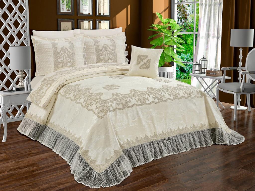 Ensemble de mariée 8 pièces en dentelle française Marque: Dowry Land Brochet: 260 x 270 cm...plus