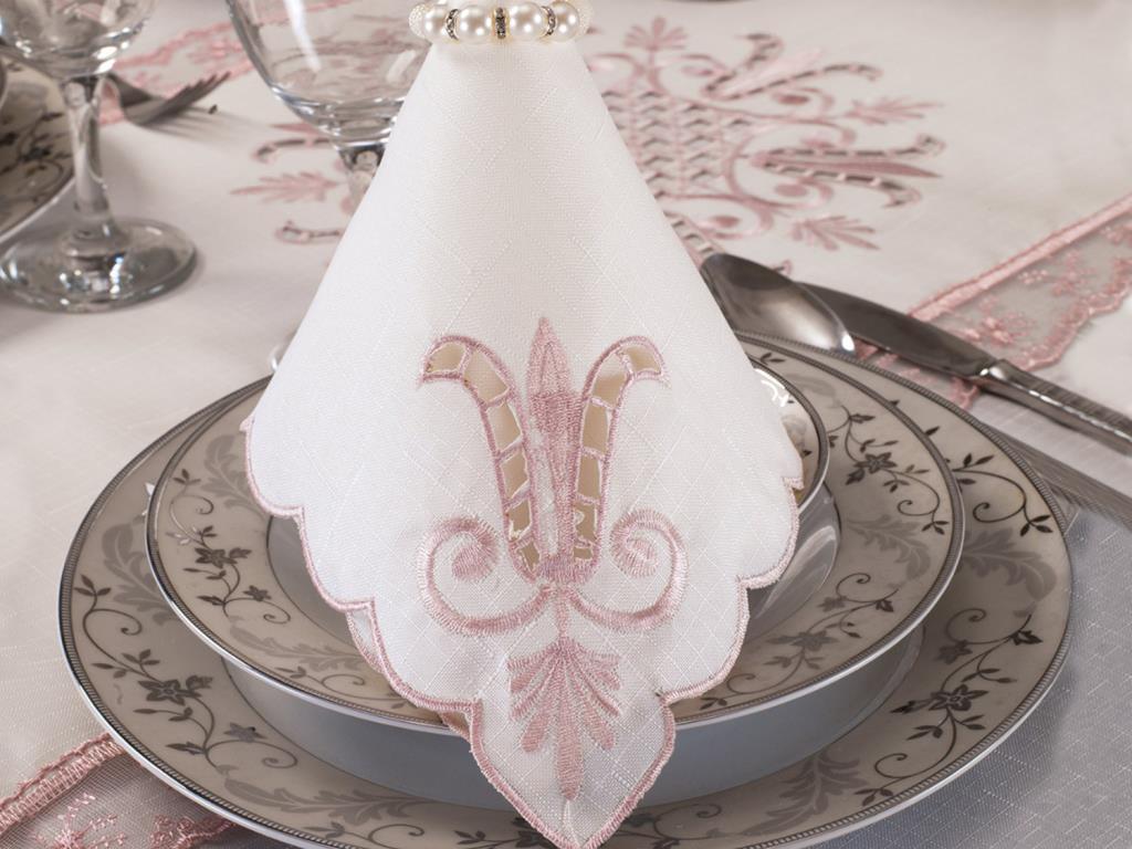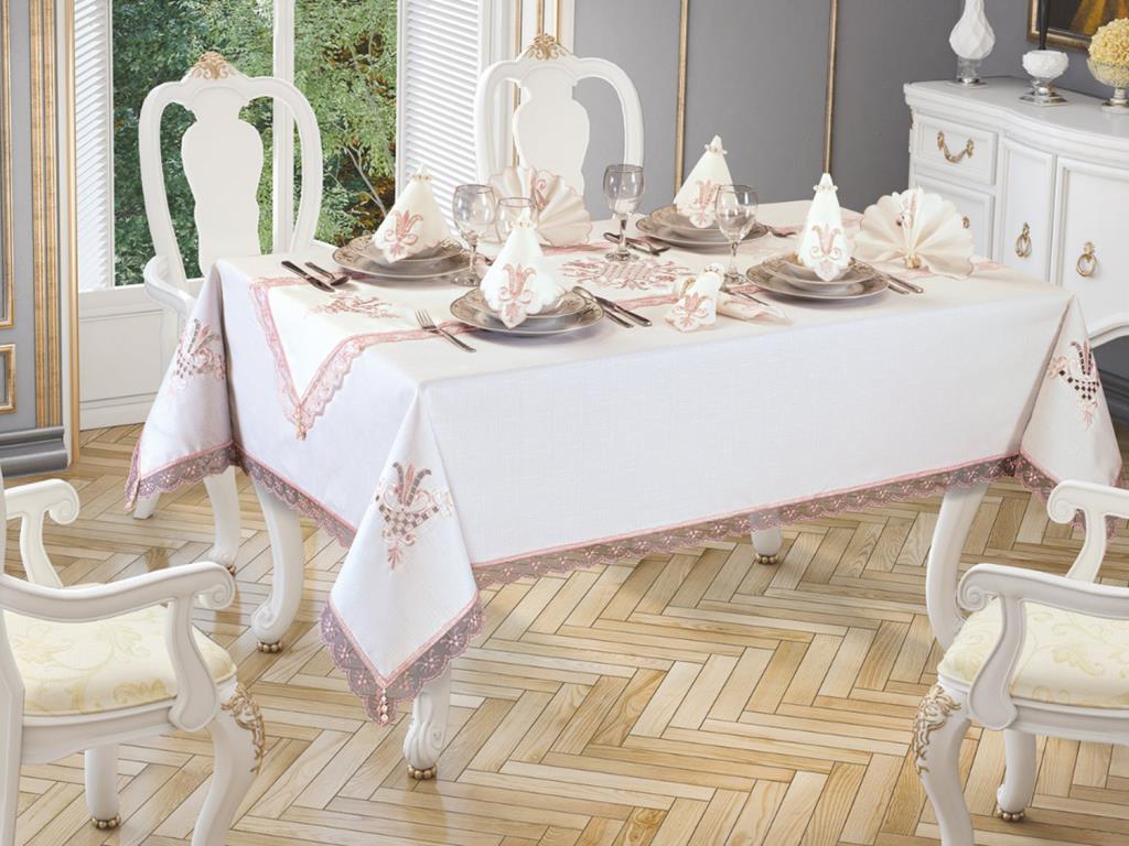 Informations sur le produit "Ensemble de nappe 8 personnes en dentelle brodée Lale Crème poudre"