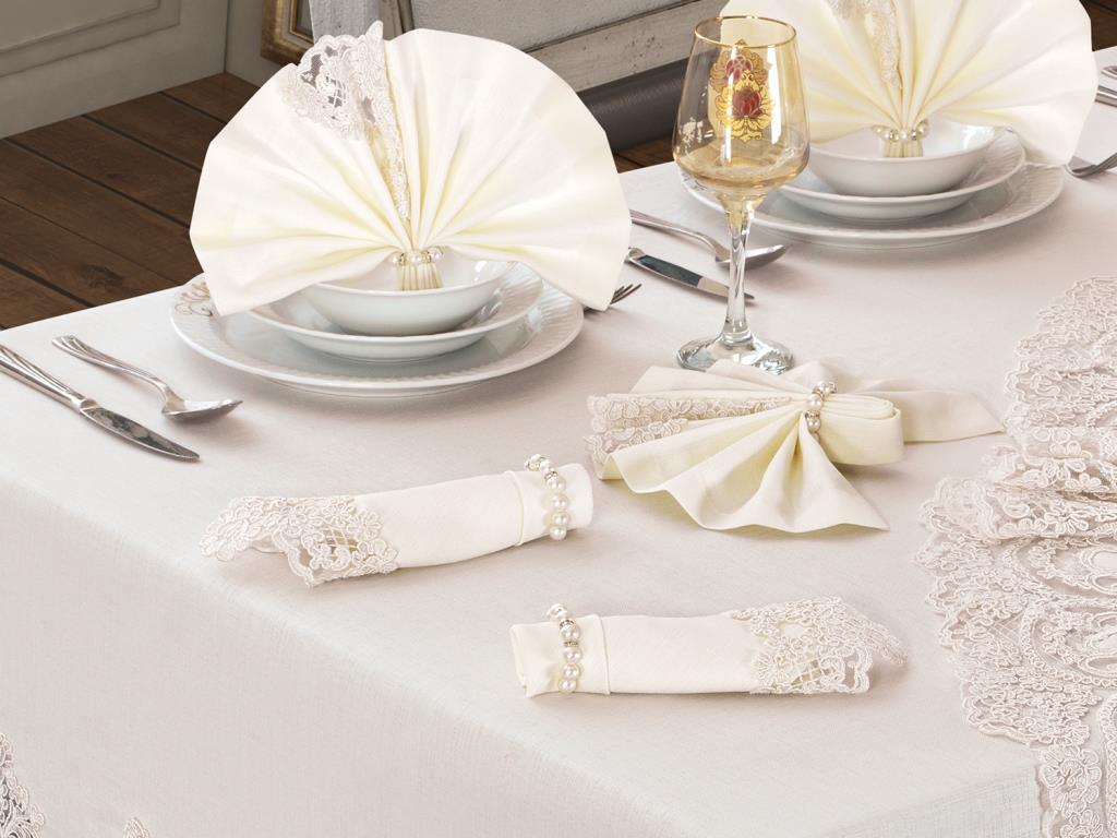 Informations sur le produit "Ensemble de nappes Lisa 18 pièces crème crème"