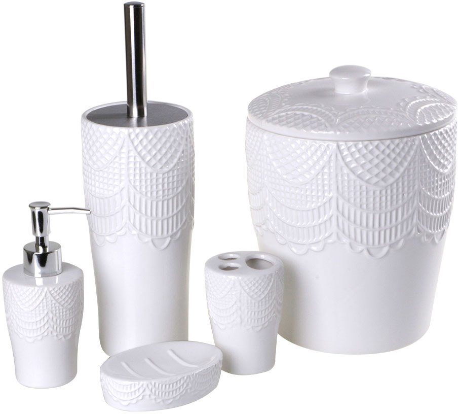- 1x distributeur de savon liquide, - 1x verre, - 1x distributeur de savon solide, - 1 ensemble de brosse de toilette, - 1x poubelle
