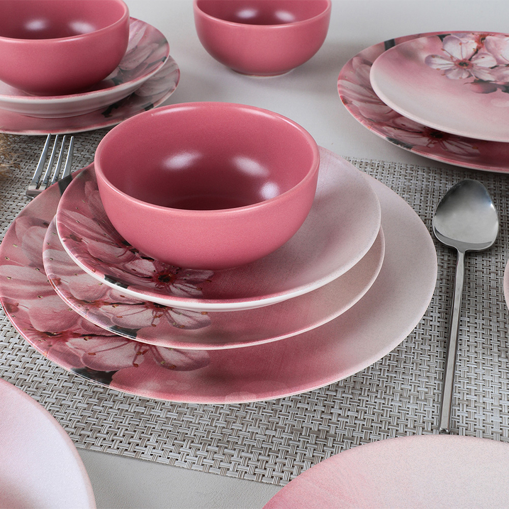 Vous serez captivé par la magie unique de la nature avec le dîner d'été rose keramika pour 6 personnes, où les doux vents d'été se rencontrent sur les tables. Cet ensemble, que nous avons conçu et combiné avec des motifs floraux élégants, enchantera vos invités et votre famille. Cet ensemble, qui plaira autant que vous à vos proches, sera un cadeau sympa et agréable pour eux.