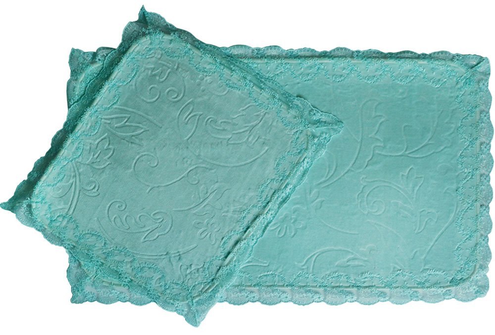 Livraison: 1x ensemble de tapis de bain Brillant 2 Prc | Turquoise Lacy | 70189-TURQUOISE