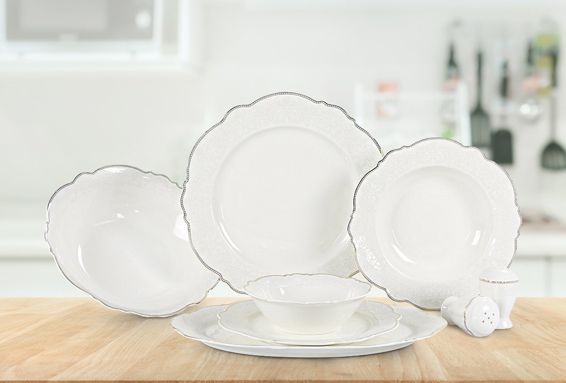 Livraison et dimensions: 1 x ensemble de vaisselle 28 pièces Güven Home | 6 personnes | Blanc | GVN-03