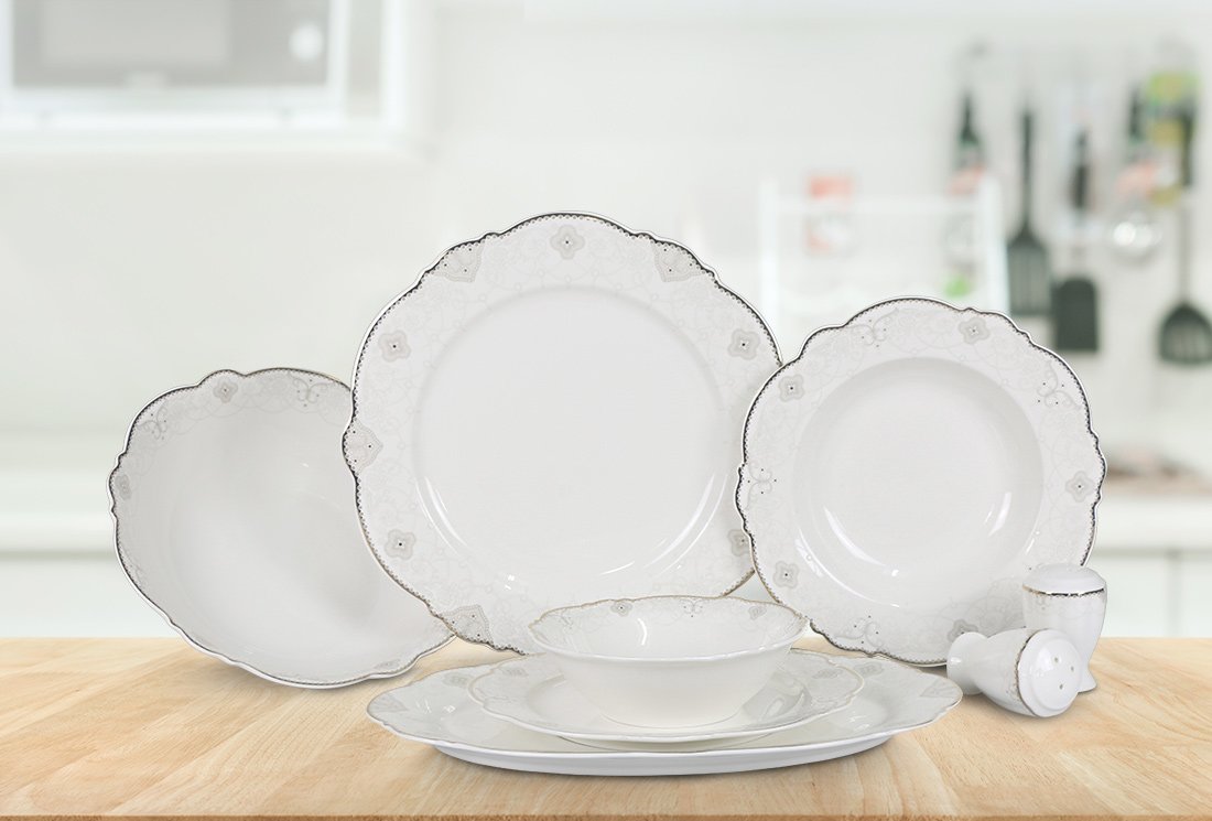 Livraison et dimensions: 1 x ensemble de vaisselle 28 pièces Güven Home | 6 personnes | Blanc | GVN-04