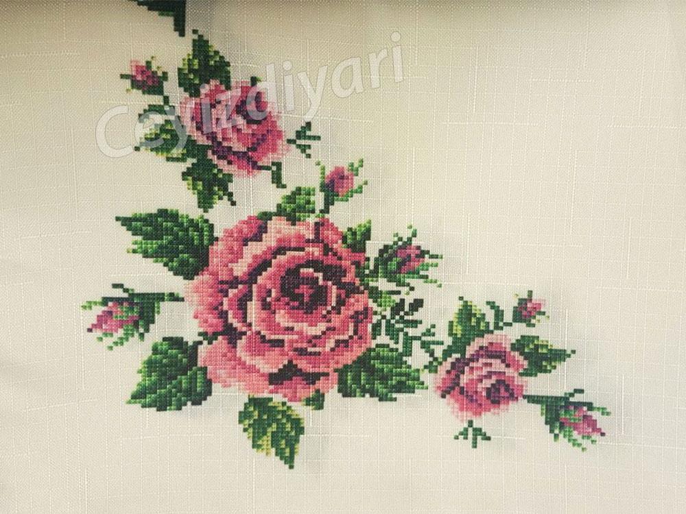 La couleur de base de la nappe est crème. Vous pouvez déterminer ce que vous voulez parmi 4 couleurs de motifs de point de croix différentes en marquant à partir des options.