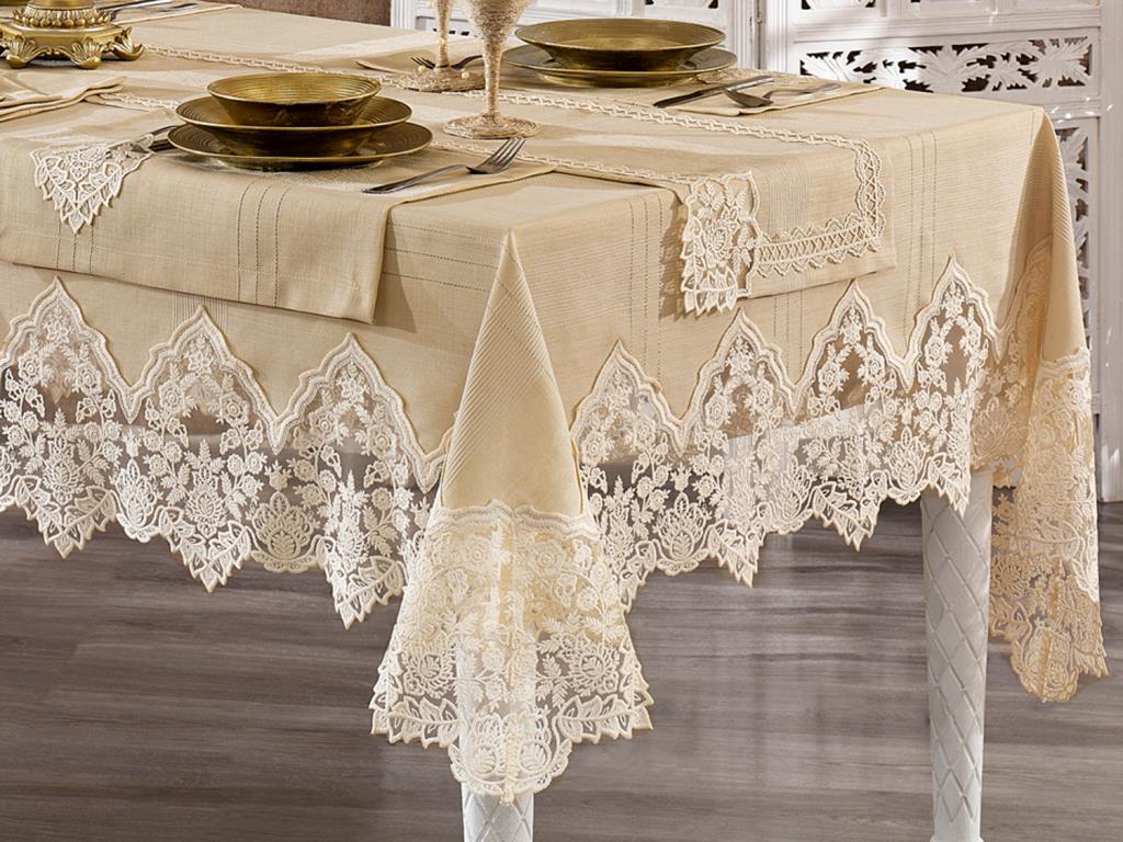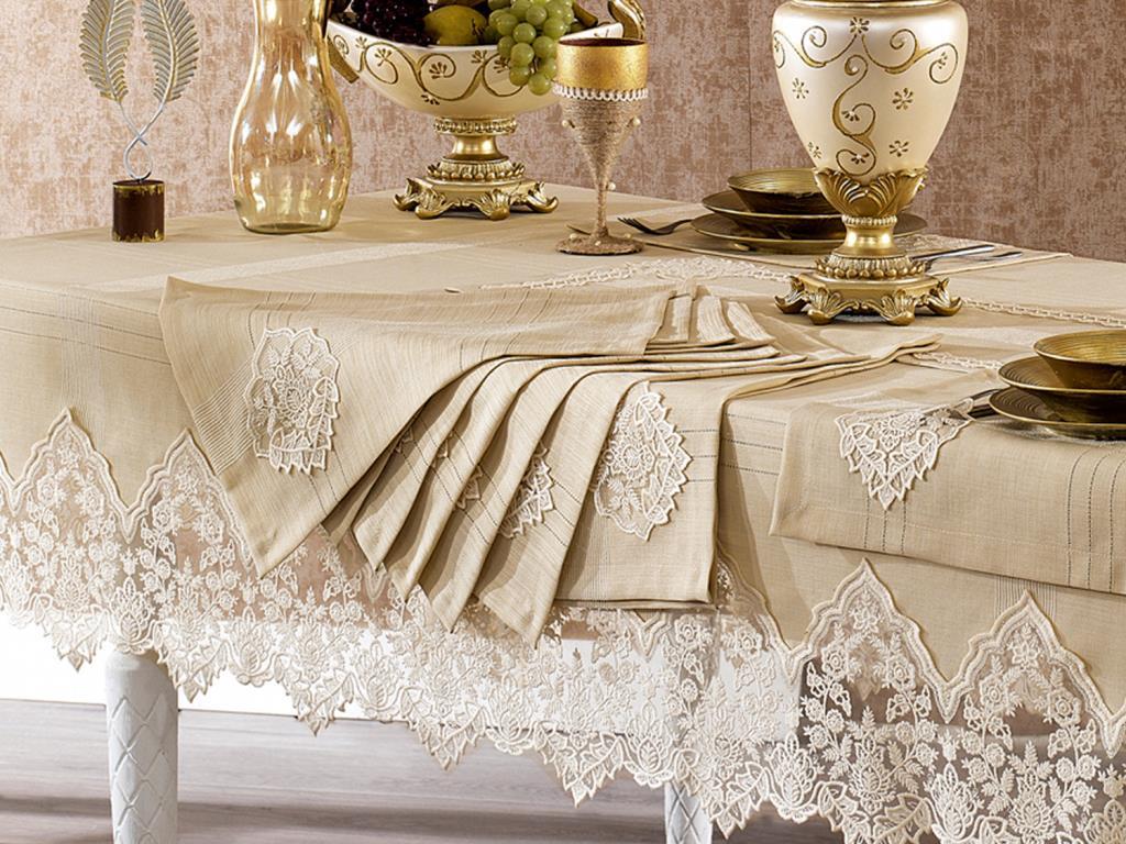 Informations sur le produit "Guipure Française Başak Linen A. Service Nappe Set 14 Pièces"