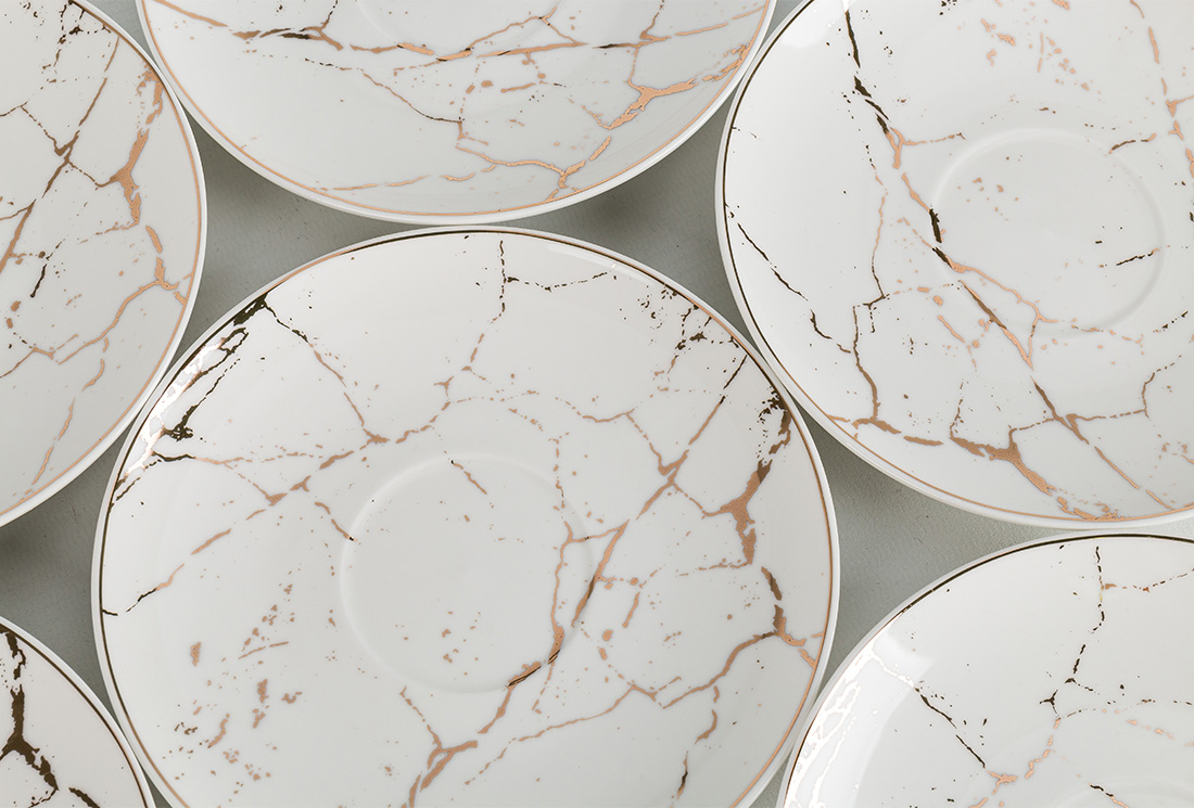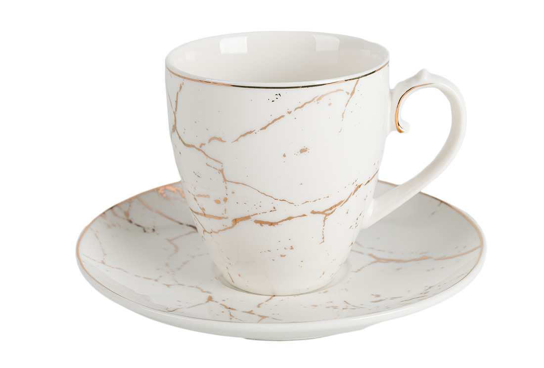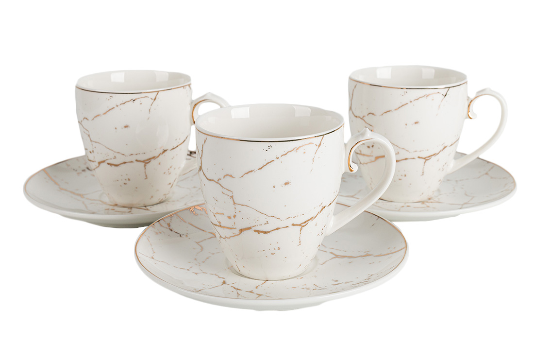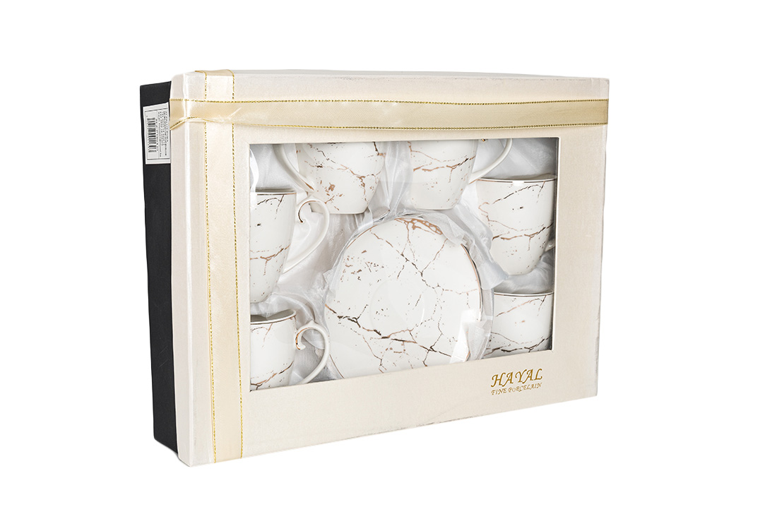 Livraison et dimensions : 1x Dream | Ensemble de tasses à café | 6 personnes | 12 pièces | Marbre à motifs | Or blanc | By-alzp-180430