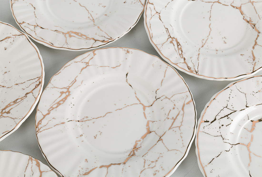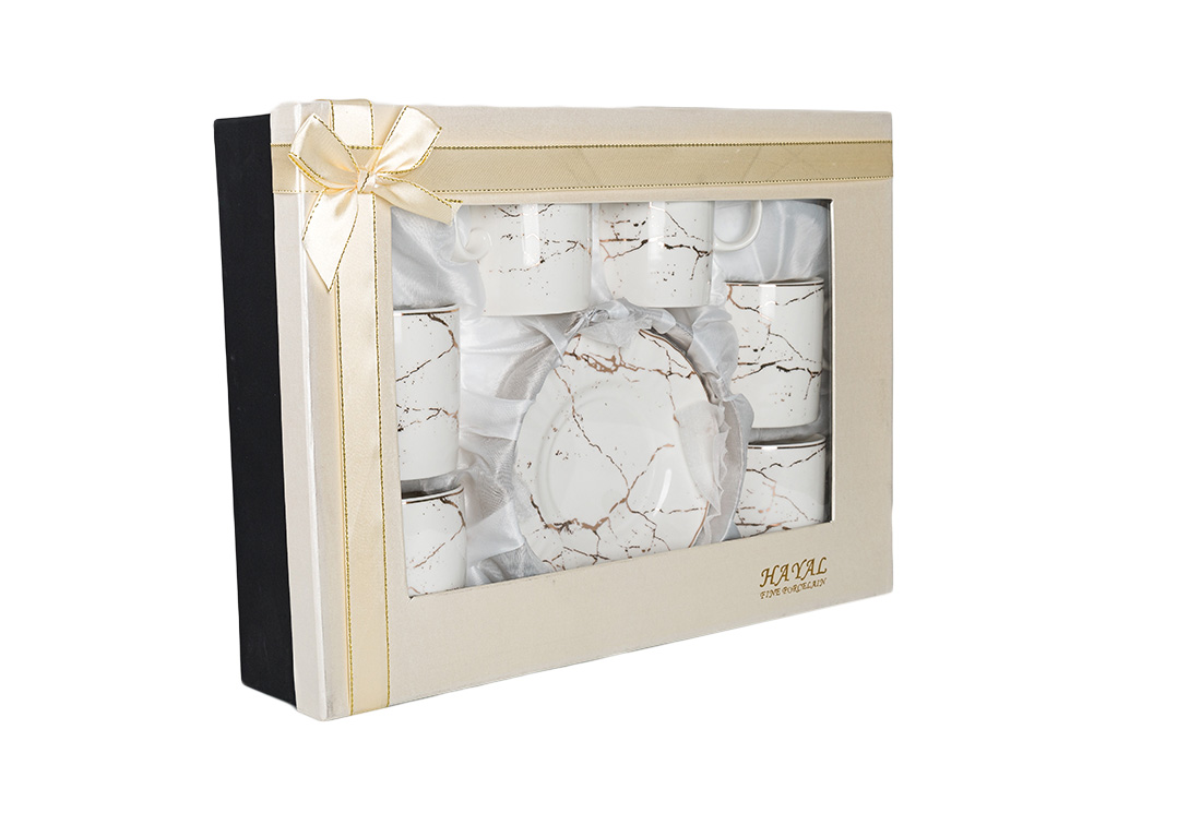 Livraison et dimensions : 1x Dream | Ensemble de tasses à café | 6 personnes | 12 pièces | Marbre à motifs | Or blanc | Par-alzp-180431