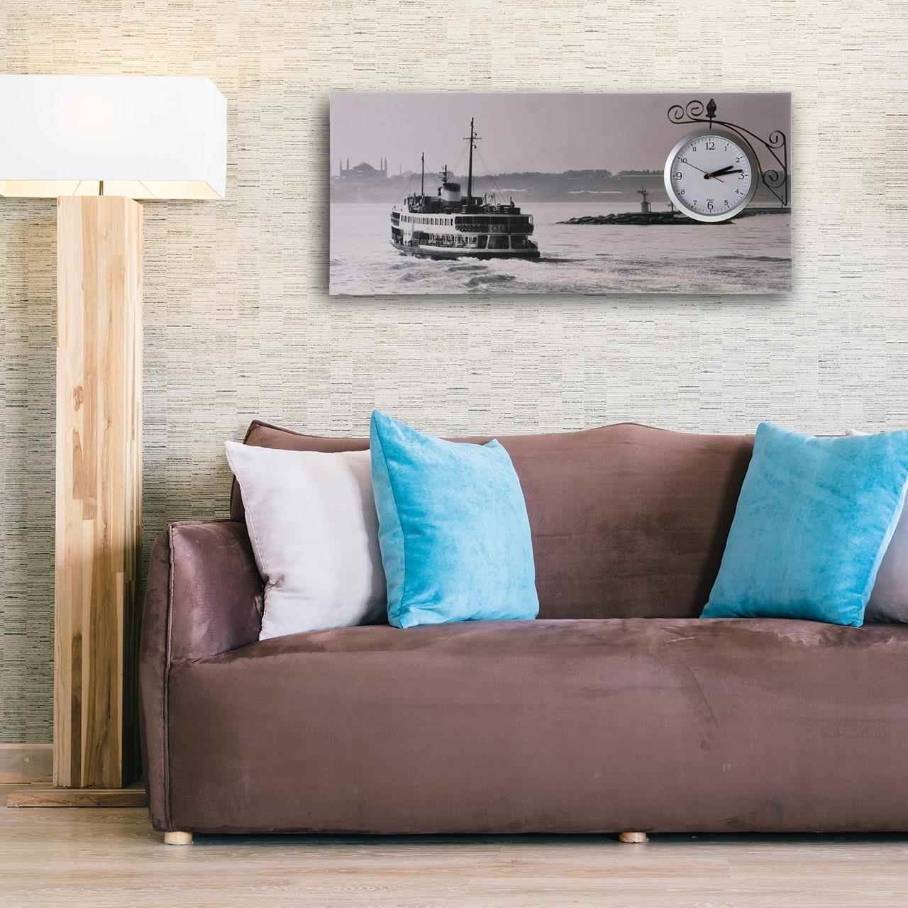 Teslimat: 1x Saatli Duvar Tablosu İstanbul Siyah Beyaz 87cm