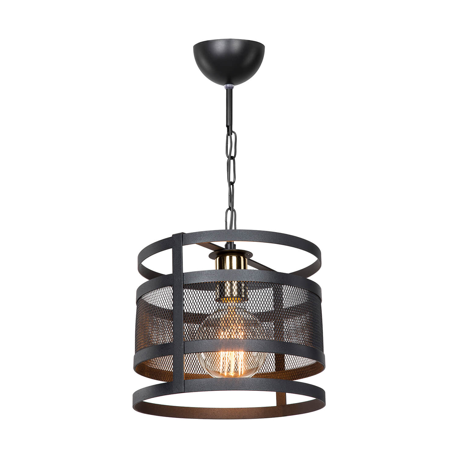 . Boîtier en métal avec motif en treillis appliqué avec de la peinture noire électrostatique; "Salda Gold Single Pendant Lamp", qui a un design moderne en le mélangeant avec des accessoires de douille en cuivre laqué, ajoute une ambiance différente à l'environnement où il se trouve.