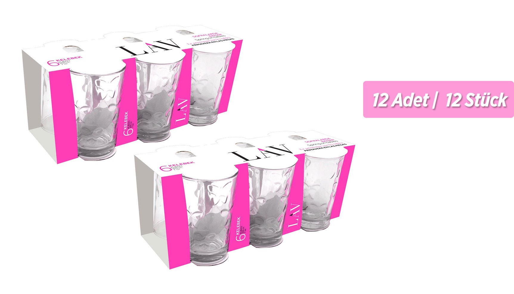 Teslimat ve Boyutlar: 1 x Lav Kelebek 12 Parça Su Bardağı Seti | 12 Kişilik