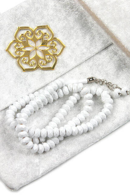 Informations sur le produit "Livre Yasin recouvert de velours - Taille du sac - Assiette spéciale nom - Chapelet - Pochette - Boîte - Couleur blanche"