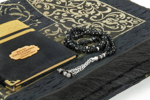 Liens supplémentaires vers "Livre Yasin recouvert de velours - Taille du sac - Motif Kaaba - Plaque spéciale nom - Tapis de prière - Chapelet - Ku"