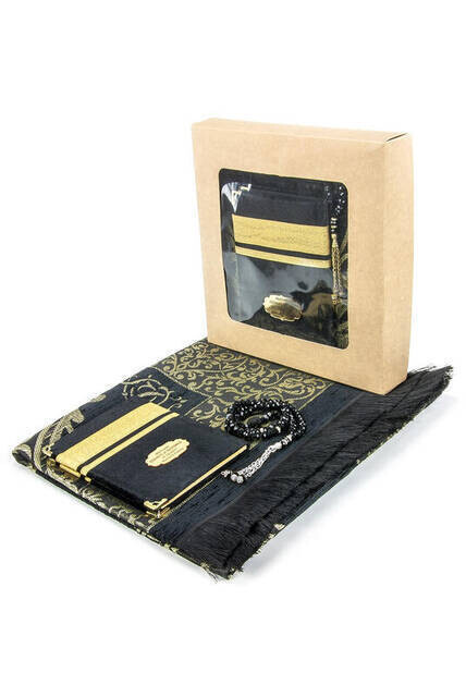 Informations sur le produit "Livre Yasin recouvert de velours - Taille du sac - Motif Kaaba - Plaque spéciale nom - Tapis de prière - Chapelet - Ku"