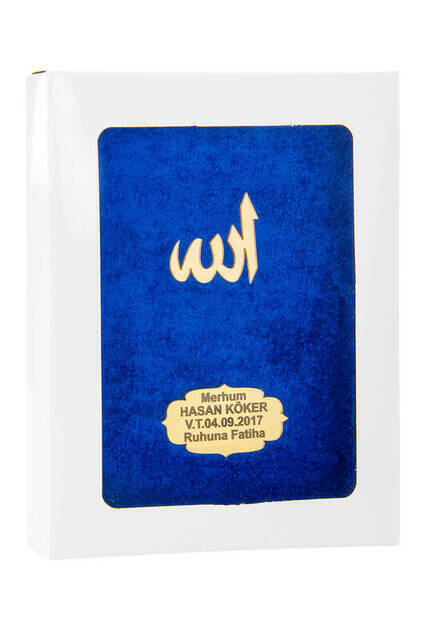 Informations sur le produit "Livre Yasin recouvert de velours - taille du sac - plaque spéciale nom - boîte - couleur bleu foncé - religieux islamique il"