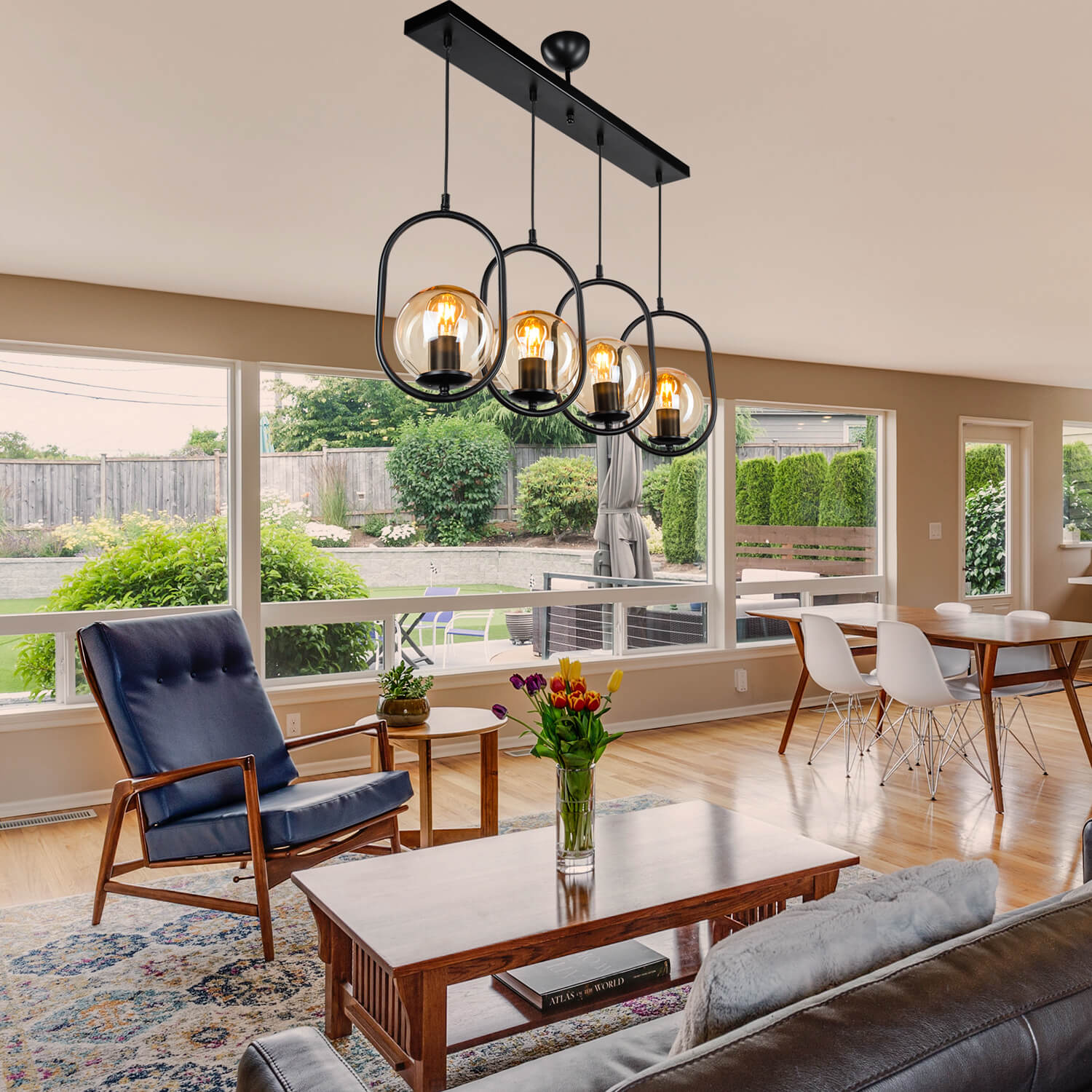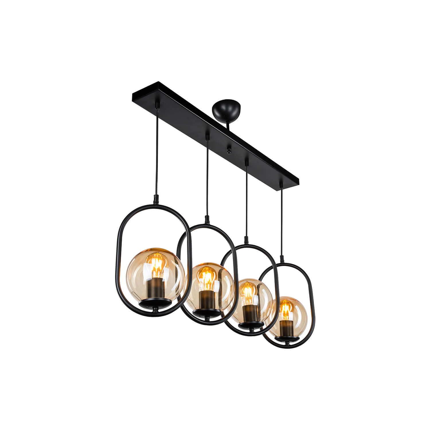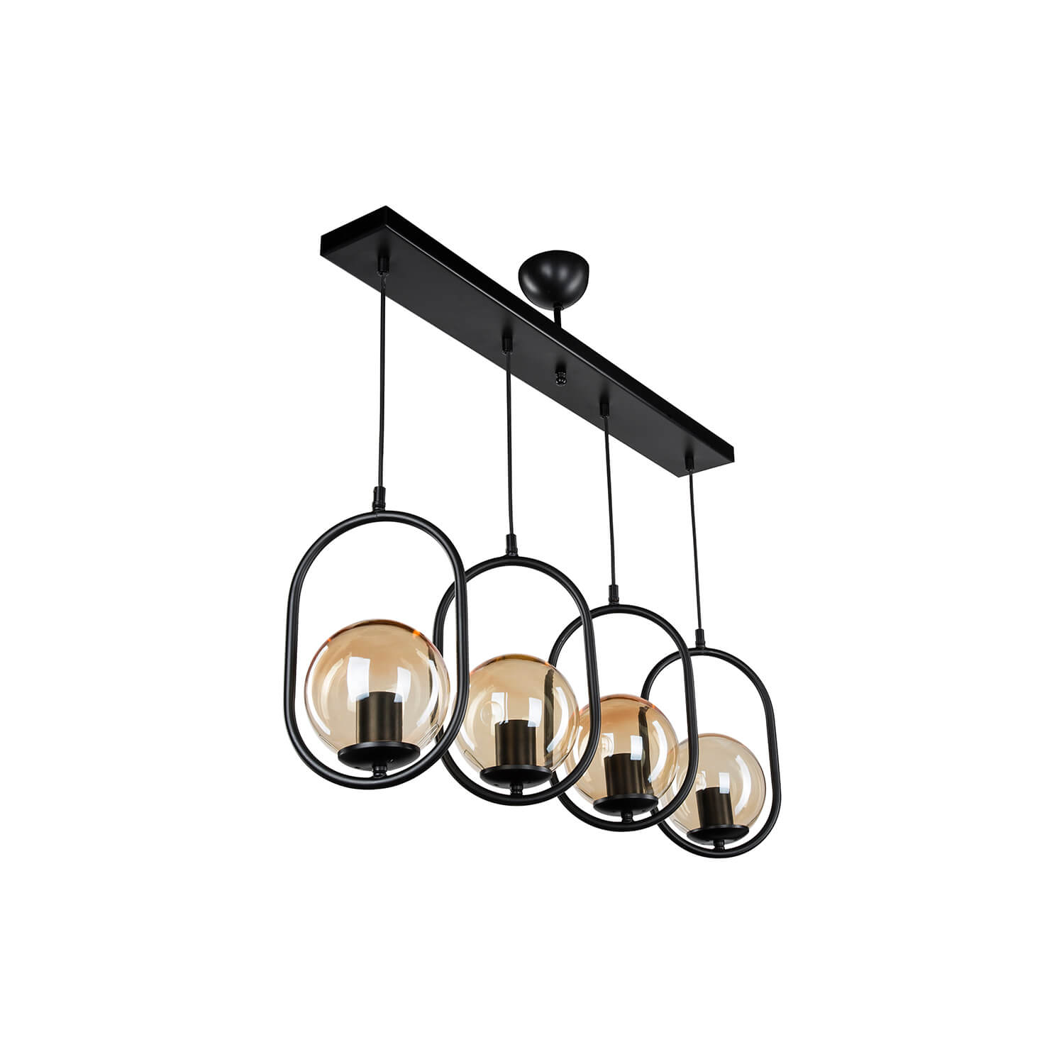 . Conçue en combinant du métal décoratif peint électrostatique avec des accessoires de douille plaqués noir et des verres de miel, la "suspension Narissa 4-Lined" reflète un style moderne à son environnement.