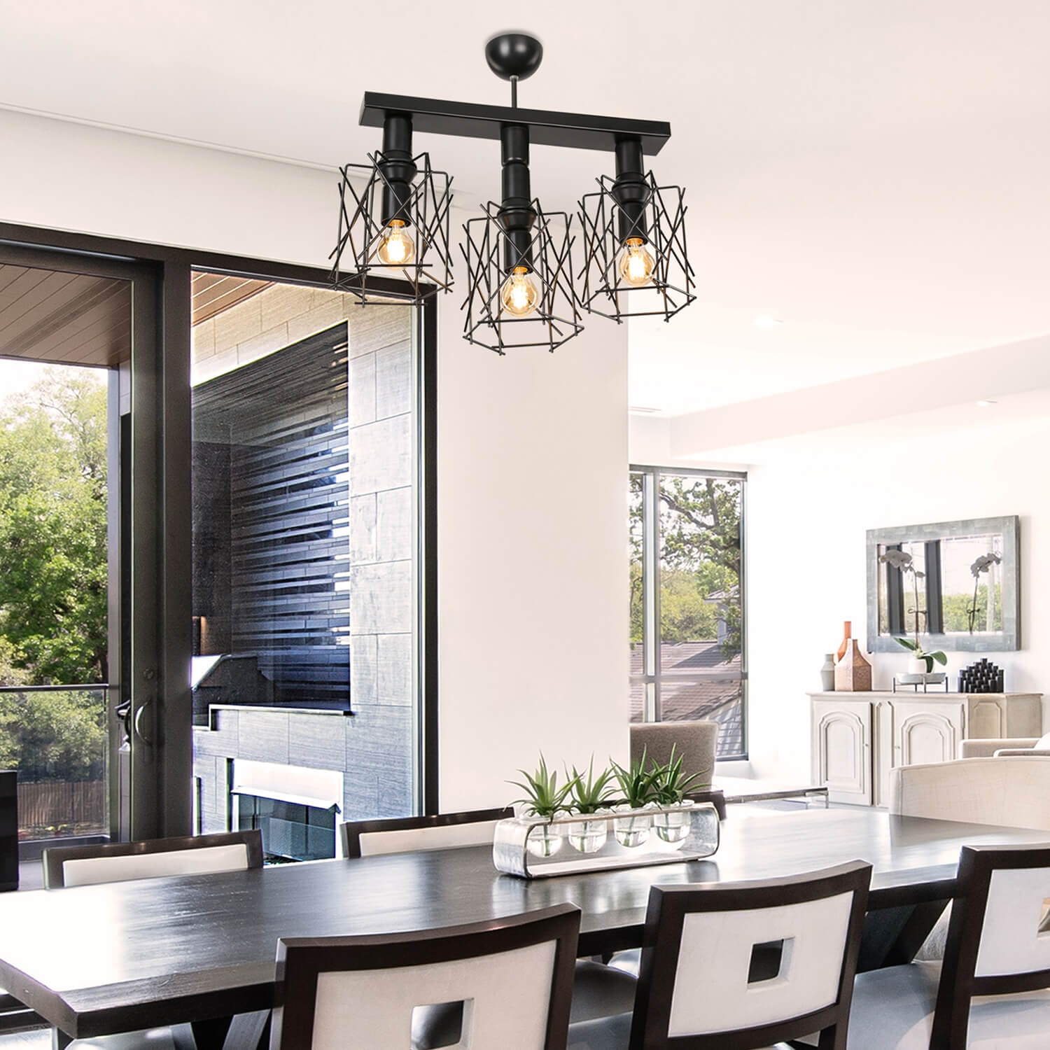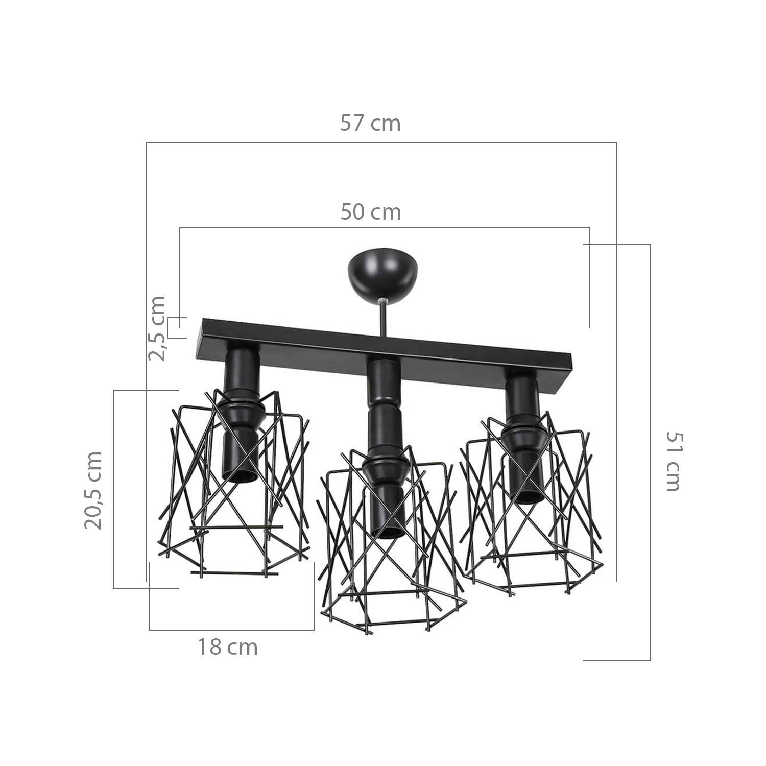 . Reflétant l'harmonie du cadre en treillis métallique asymétrique peint électrostatique et des lignes reflétant le style moderne, le «lustre mixte 3 plafondres» ajoute une ambiance différente à l'environnement où il se trouve.