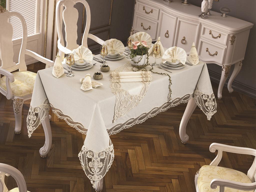 Informations sur le produit "Nappe de table Gonca à lacets, crème"