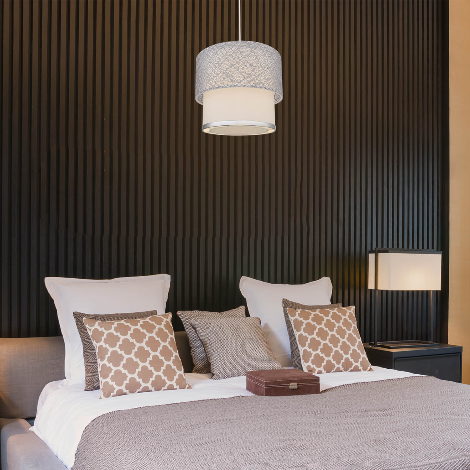 La suspension abat-jour camoufle la source lumineuse et réfléchit la lumière vers le plafond grâce au séparateur en bas et à la partie supérieure ouverte, fournissant un éclairage doux et suffisant qui ne fatigue pas les yeux.