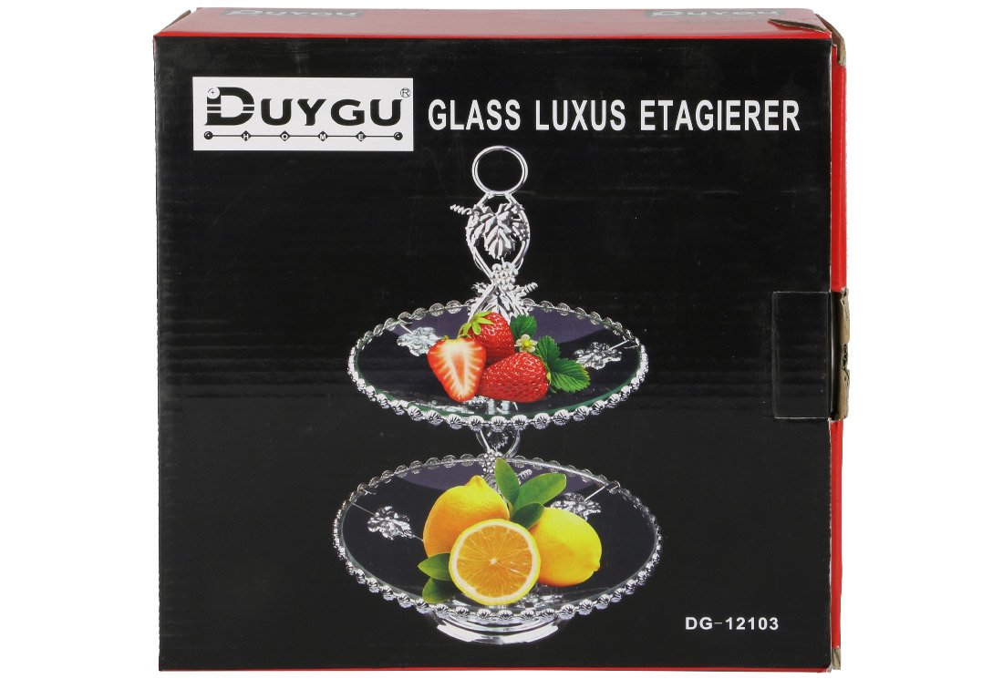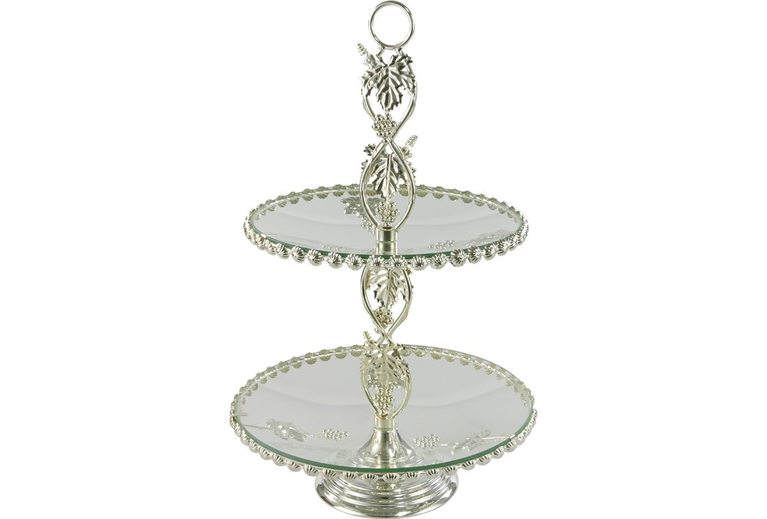 Livraison et dimensions: 1 x plaque de service d'étagère à 2 niveaux Duygu | Verre Métal | Argent