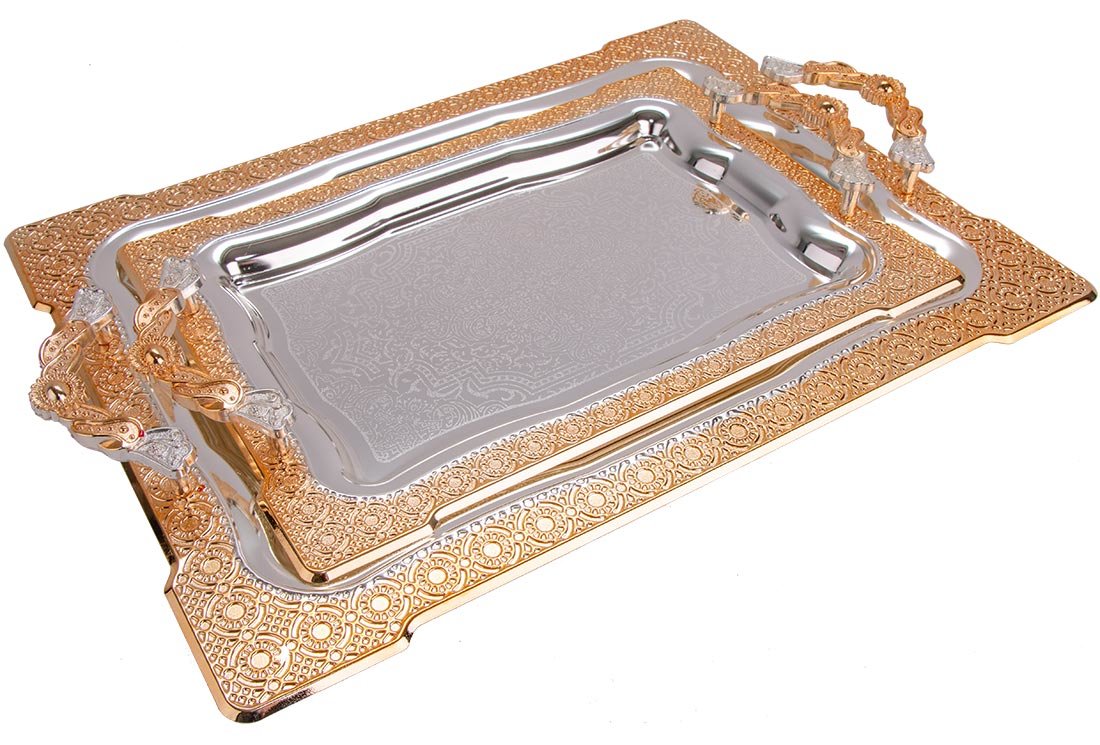 Livraison et dimensions: Plateau Bavary Double Elegance Haute Qualité | Or | Par-2208l-mh53g