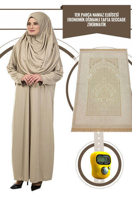 Liens supplémentaires vers "Robe de prière une pièce - Vison - 5015 et tapis de prière et Zikirmatik - Ensemble triple"