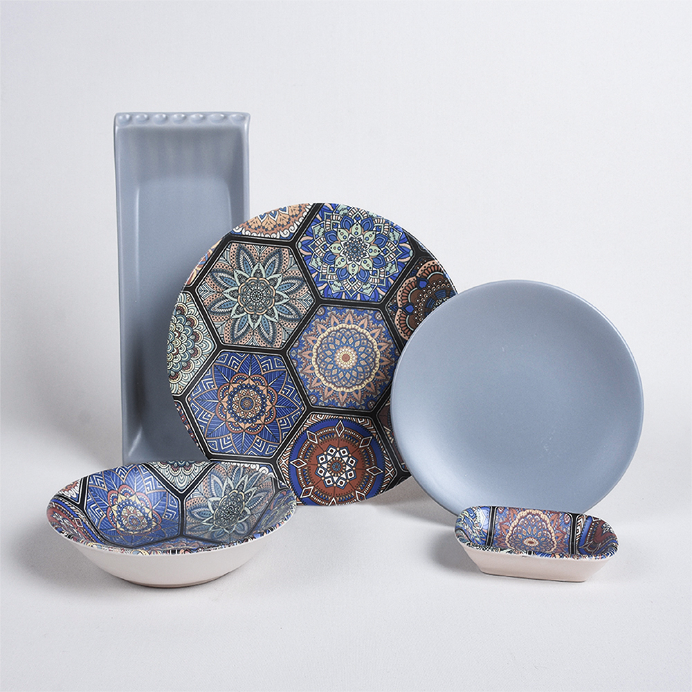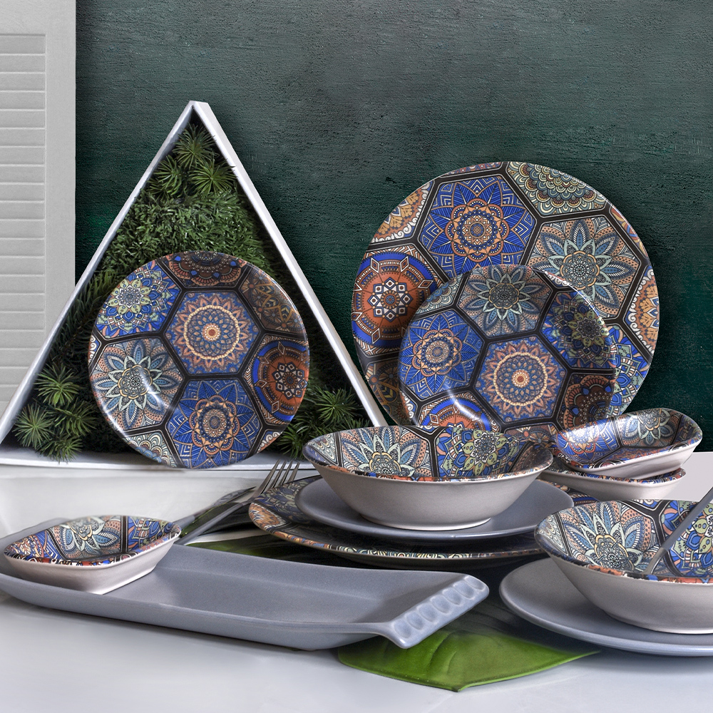 L'élégance du passé au présent ... Apportant le motif mandala à vos tables, la vaisselle mihribah 6 personnes keramika a été soigneusement conçue par des professionnels. Cet ensemble de salle à manger, qui transforme la présentation unique d'élégantes tables d'invitation en un beau festin aux tons riches, enchantera votre famille et vos invités. Cet ensemble de dîner, qui fera en sorte que vos proches se sentent spéciaux, peut être parmi vos choix comme un beau cadeau.