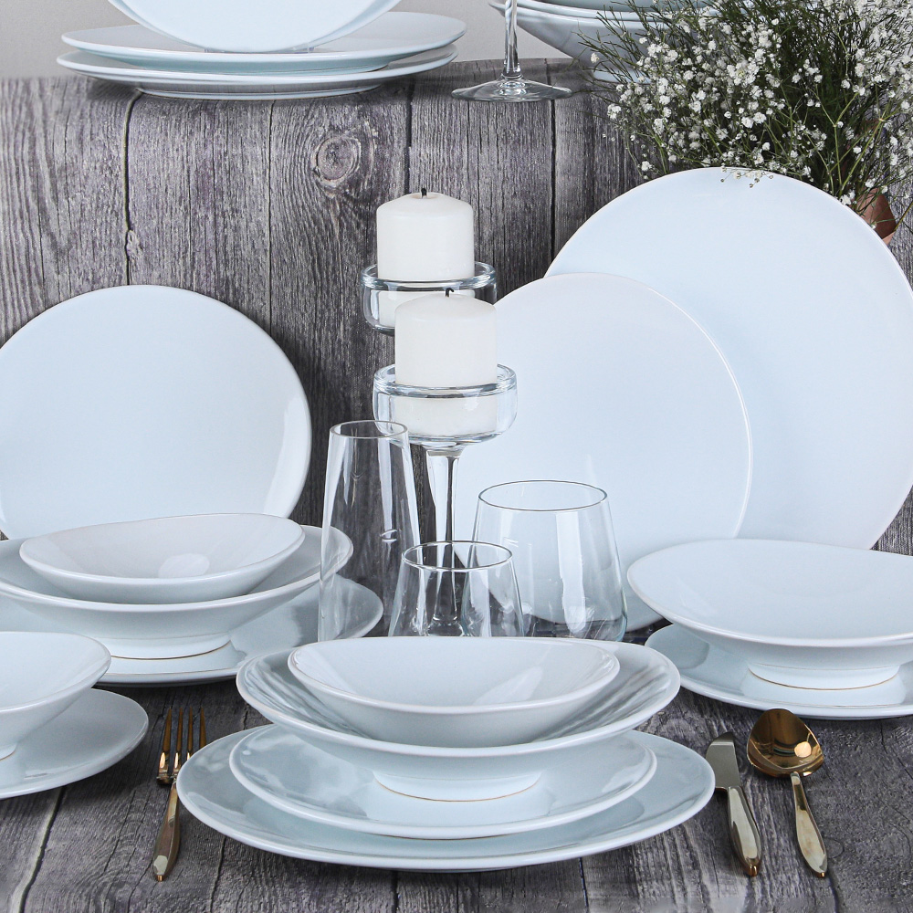 Adapté à tous les âges et à tous les goûts, l'ensemble de salle à manger ovale blanc pour 6 personnes Keramika a été soigneusement conçu par des professionnels. Sa forme basée sur la simplicité sera le plus beau détail de vos tables élégantes avec sa structure minimaliste. Grâce à sa couleur blanche, cette vaisselle, qui peut s'adapter à n'importe quelle table, ajoutera de la saveur à vos délicieux repas et de la beauté à vos belles conversations. Vous pouvez également choisir cette jolie vaisselle comme cadeau et faire en sorte que vos proches se souviennent de vous à chaque table.