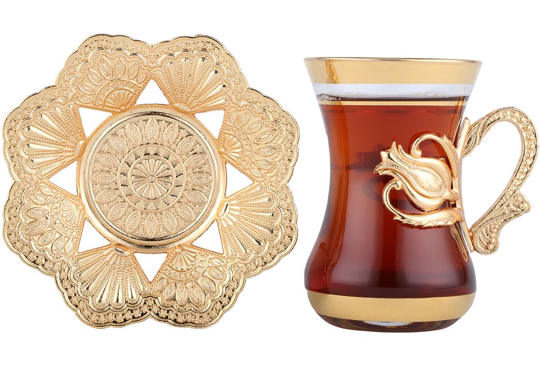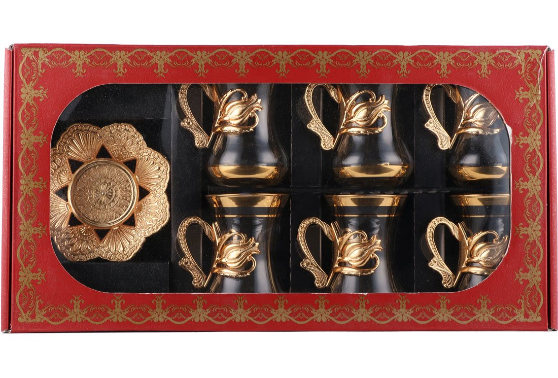 Livraison et dimensions: 1x Service à thé ottoman 6 pièces Asia | 12 pièces | Or | Asie-0005