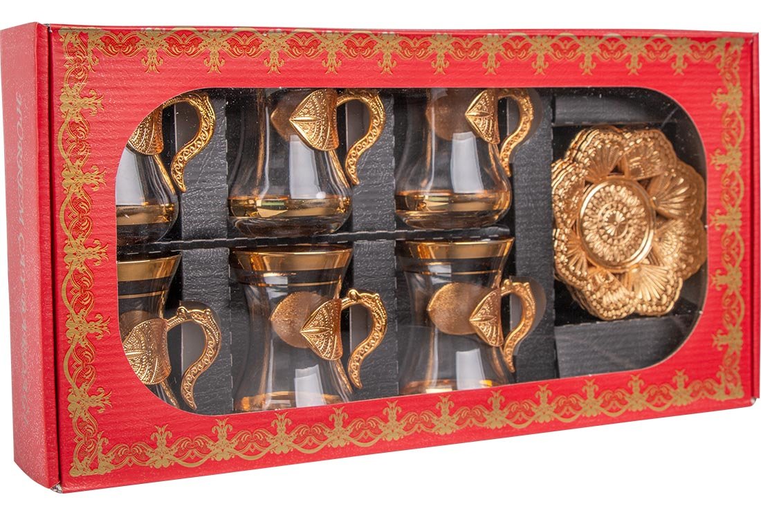 Livraison et dimensions: 1x Service à thé ottoman 6 pièces Asia | 12 pièces | Or | Asie-0007