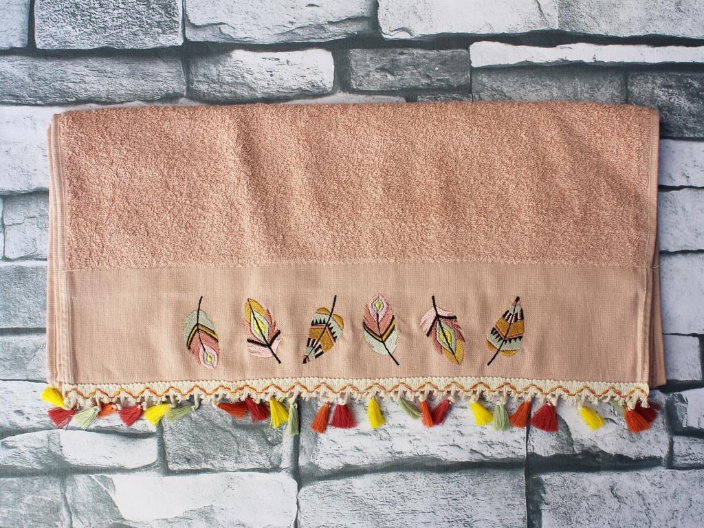 Informations sur le produit "Serviette de dot brodée de feuilles colorées Dowry Land saumon"