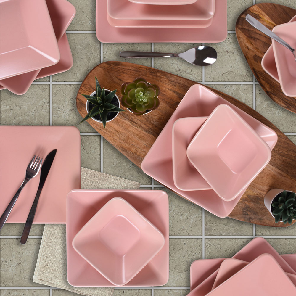 Sortez vos présentations de l'ordinaire avec sa structure carrée spéciale! La vaisselle Keramika 6 personnes Siera Matte Light Pink Square est fabriquée avec soin en étant façonnée par des mains habiles. Vous pouvez facilement utiliser le produit pour votre petit-déjeuner lors d'un dîner agréable ou pour commencer une belle journée. Avec son élégance accrocheuse, vous pouvez faire un bon choix comme cadeau très spécial pour vos proches.