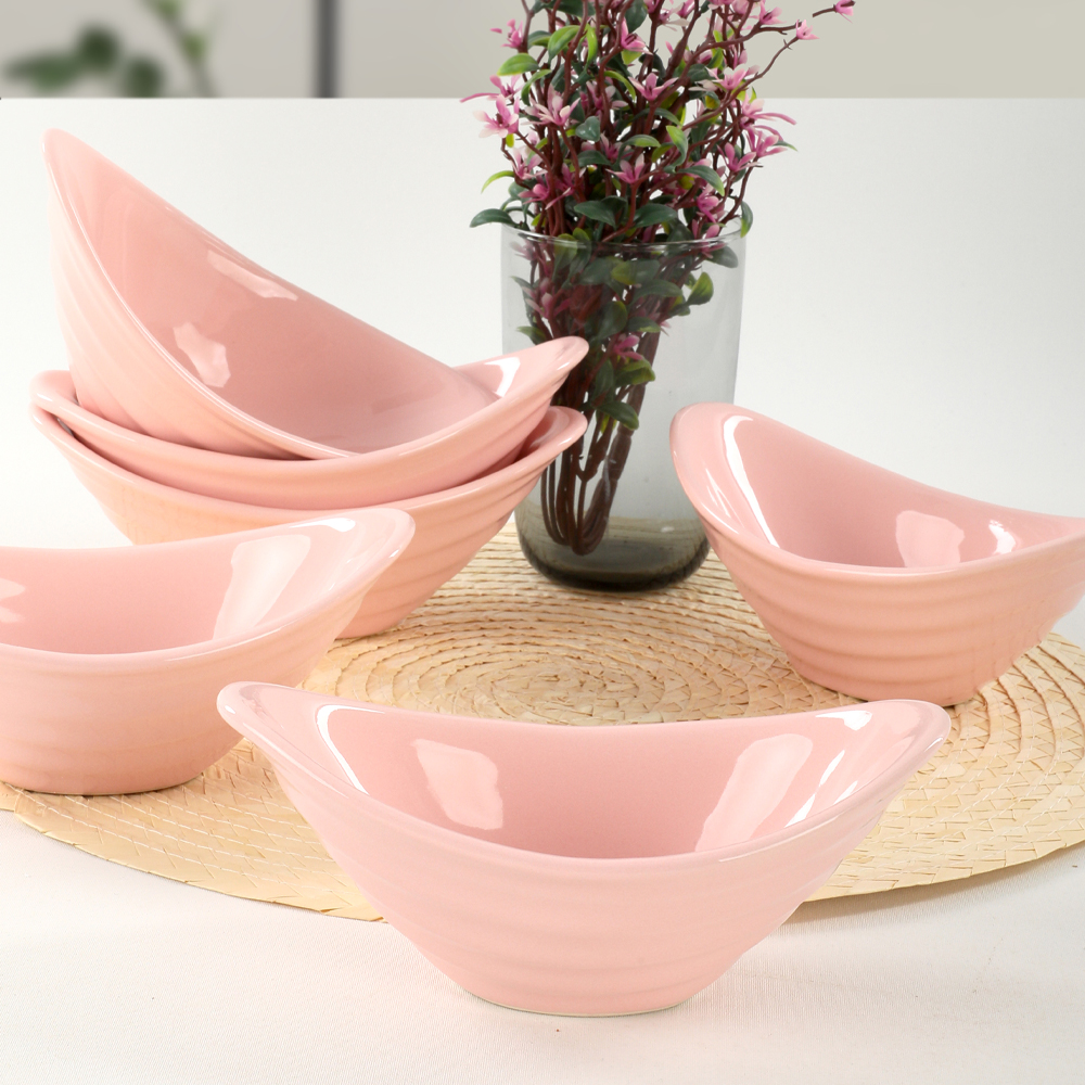 Un simple dîner de famille ou une fête bondée vous accompagnera, et 6 gondoles rose clair de keramika ajouteront une atmosphère très élégante à votre service. Ces produits, qui vous permettront de faire des présentations accrocheuses, donneront à votre table un look cool.