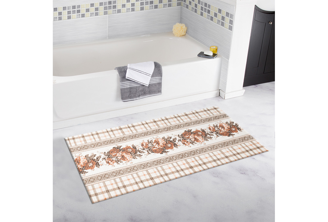 Livraison et dimensions : 1 x tapis de bain décoratif Aquamat | Polyester | À motifs de fleurs | 65cm | Aquamat-0010