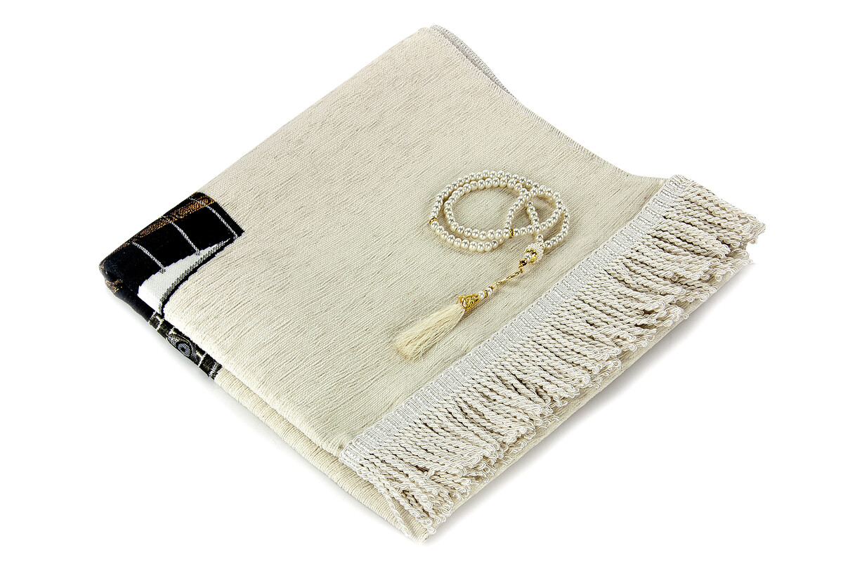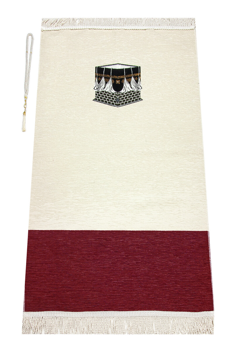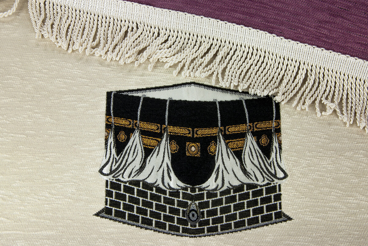 - En exécutant nos prières avec notre prière de prière avec un motif de kaaba; C'est un tapis de prière entièrement tissé appelé KABE, spécialement conçu pour respirer l'air spirituel et rappeler ces lieux saints.