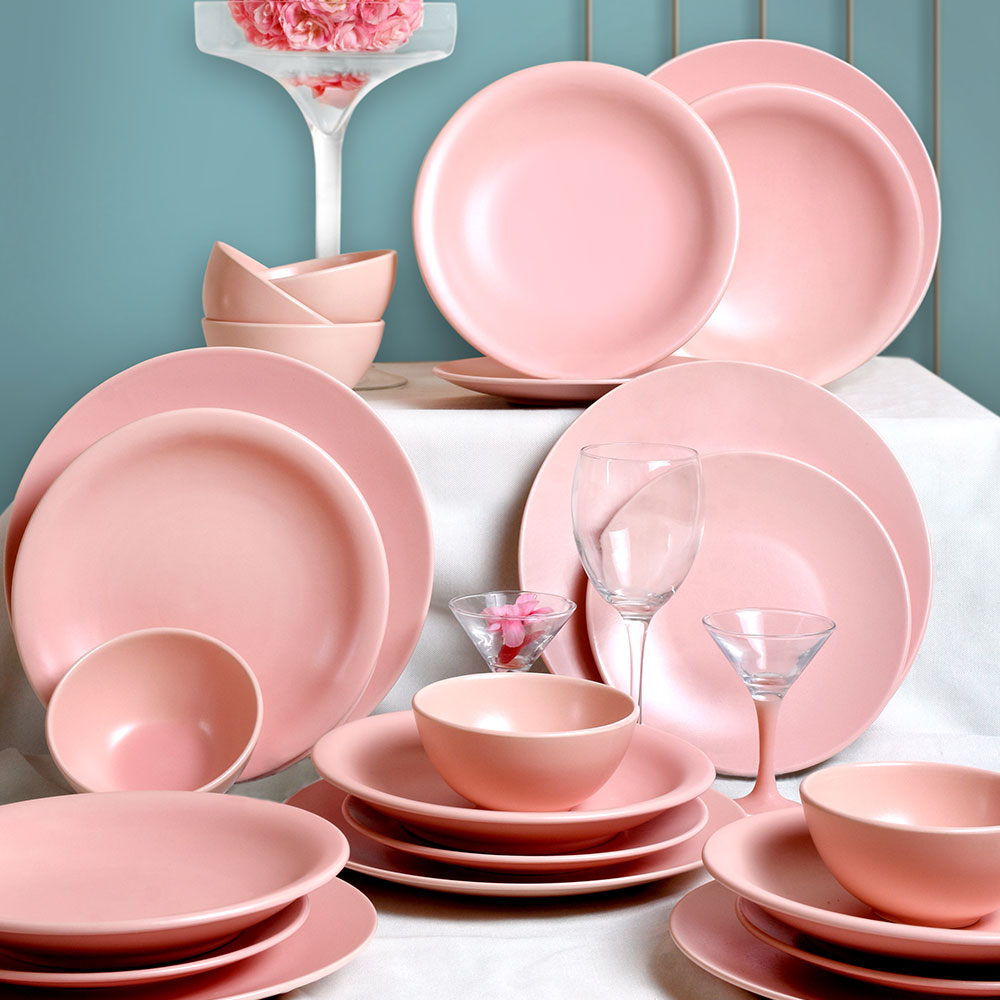 Vaisselle Ege Mat Rose Clair 24 Pièces pour 6 Personnes | céramique