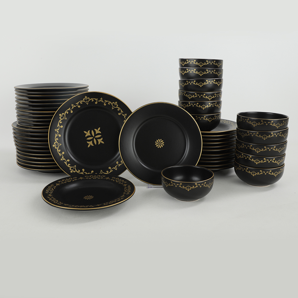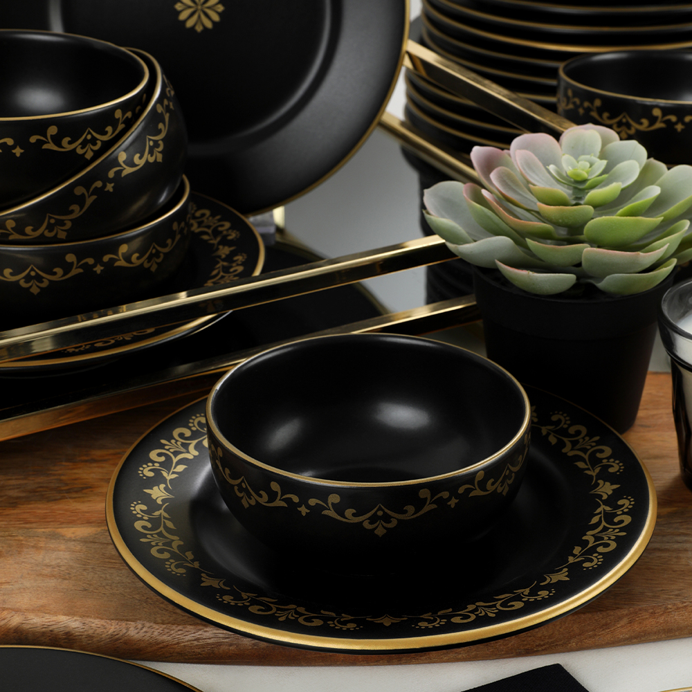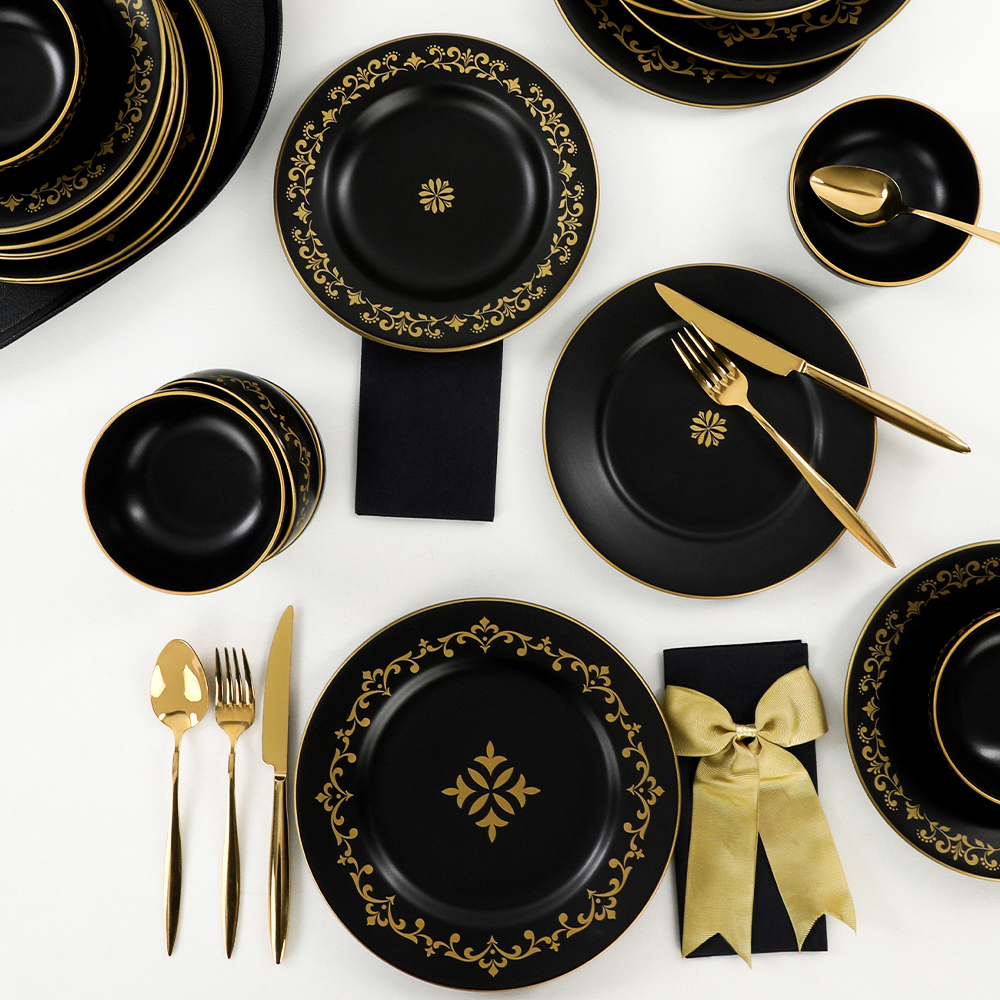 Informations sur le produit "Vaisselle Riva Or Noir Mat 48 Pièces pour 12 Personnes | céramique"