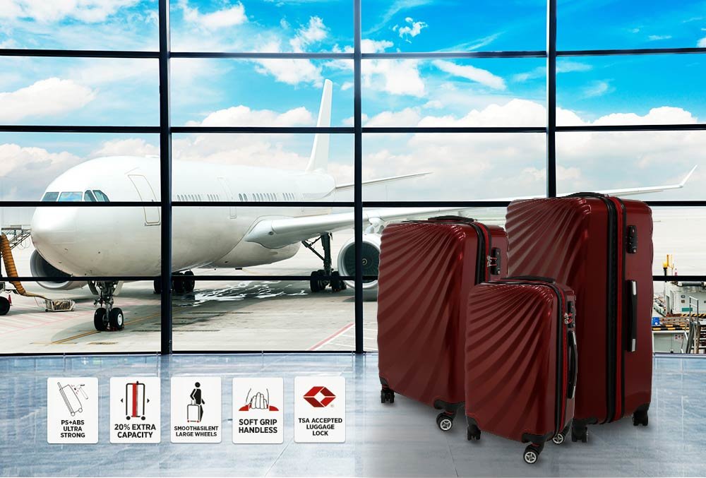 Teslimat ve Boyutlar: 1 x Viviana Hard Case 3'lü Bavul Seti 360° Dönen Tekerlekli | Kırmızı | TSA Kilitli | S6277-red
