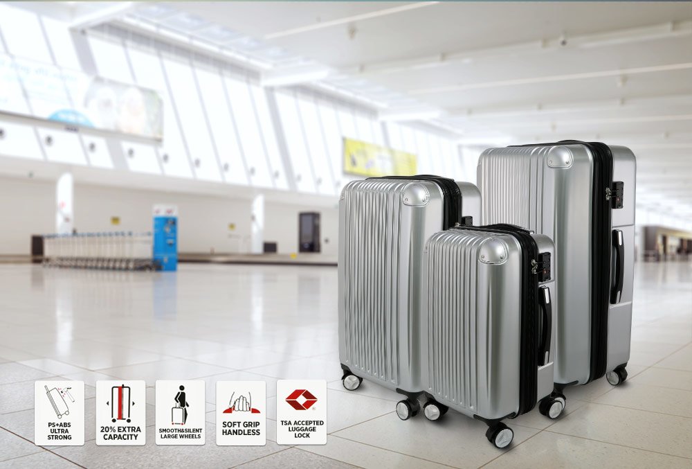 Teslimat ve Boyutlar: 1 x Viviana Hard Case 3'lü Lüks Bavul Seti 360° Dönen Tekerlekli | Gümüş | TSA Kilitli | S5214-silver