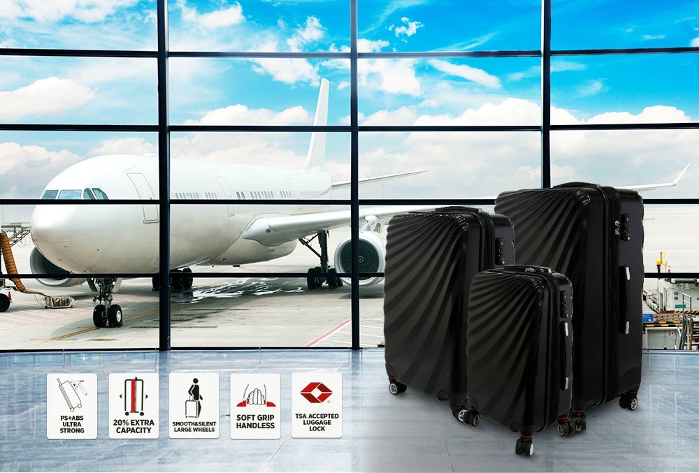 Livraison et dimensions: 1 x Viviana Hard Case Set de 3 valises avec roues rotatives à 360 ° | Noir | TSA verrouillé | S6277-noir