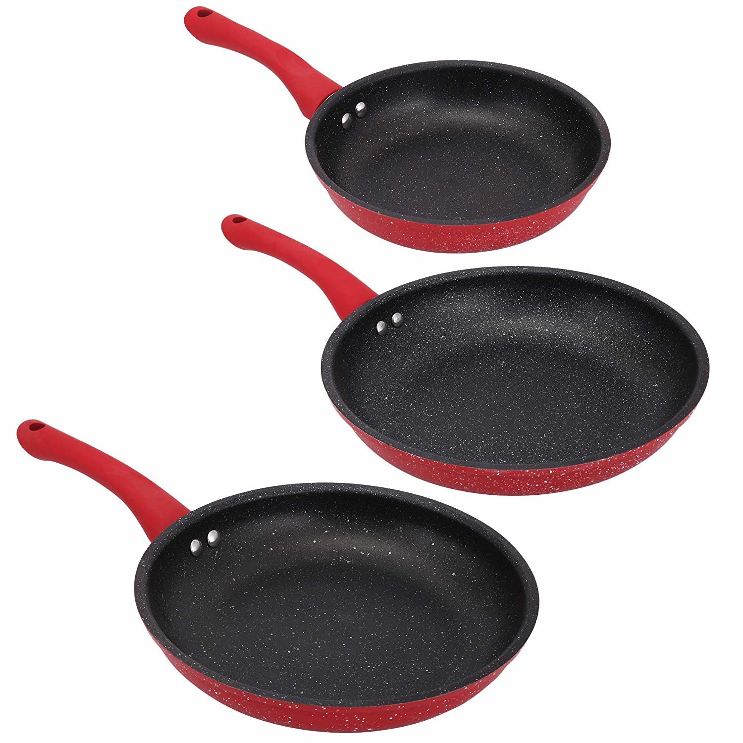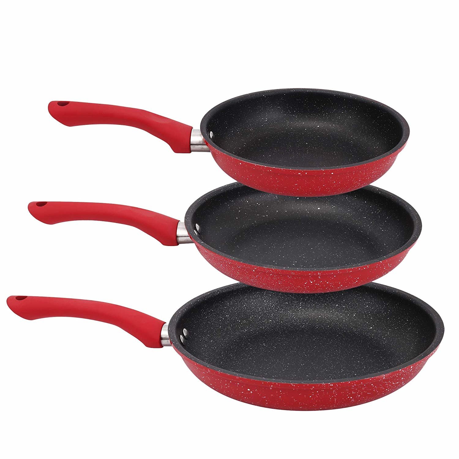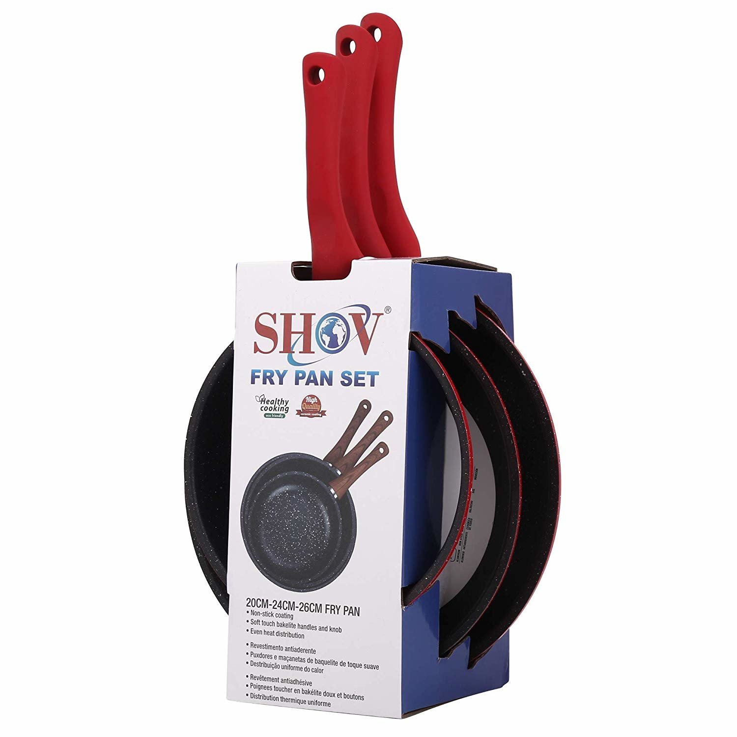 Teslimat ve Boyutlar: 1 x Shov 3'lü Tava Seti Seramik Kaplama | İndüksiyonlu | Kırmızı