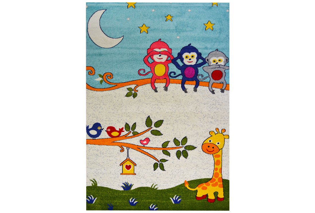 Teslimat: 1x Siela Kids Neşeli Maymunlar Çocuk Halısı | Mavi | S-1150-Blue
