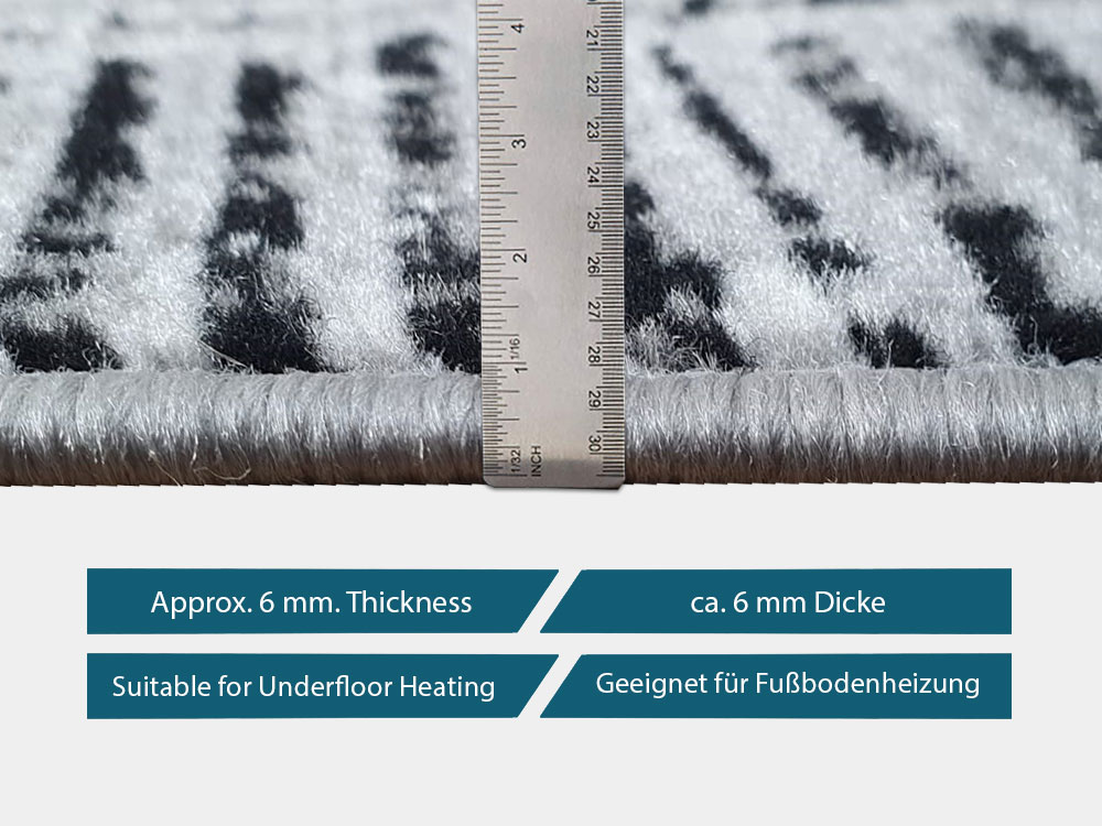 [YÜKSEK KALİTE] Gri renkli süper modern halı - fotoğraftaki gibi. Halı ısıyı depolar, böylece odadaki sıcaklığı korur ve kış için mükemmeldir. Halı, yerden ısıtma için de uygundur. Halının yüksekliği yaklaşık 6 mm'dir.