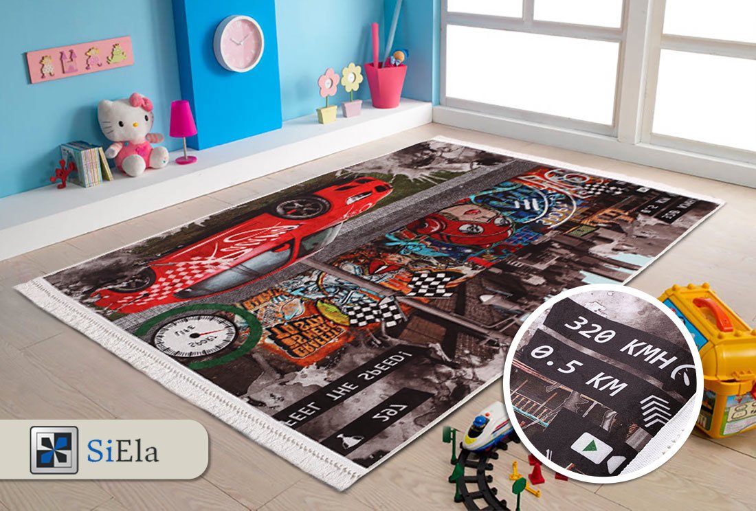 Teslimat: 1x Siela Yarış Arabalı Yıkanabilen Çocuk Halısı | Renkli | Car