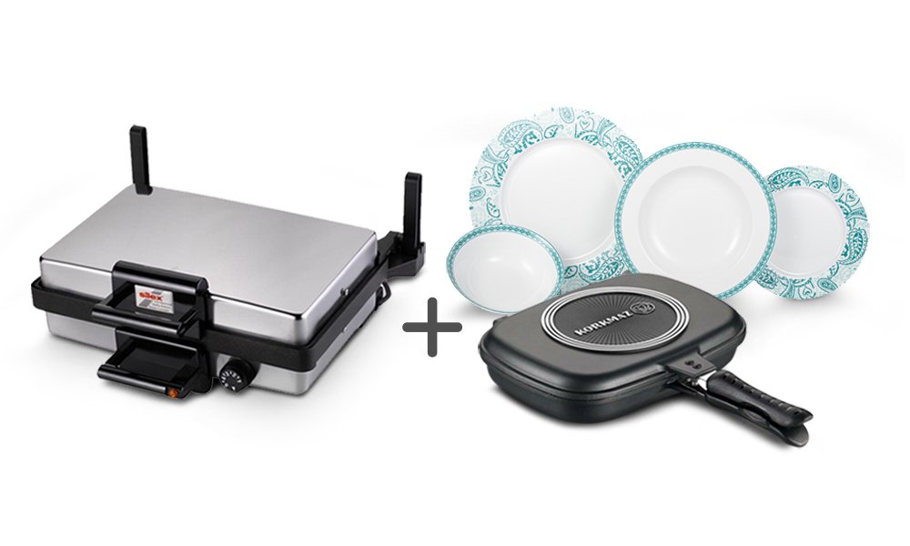 Silex Gümüş Izgara Makinesi & Korkmaz Siesta 48 Parça Yemek Takımı & Korkmaz Duplo Tava