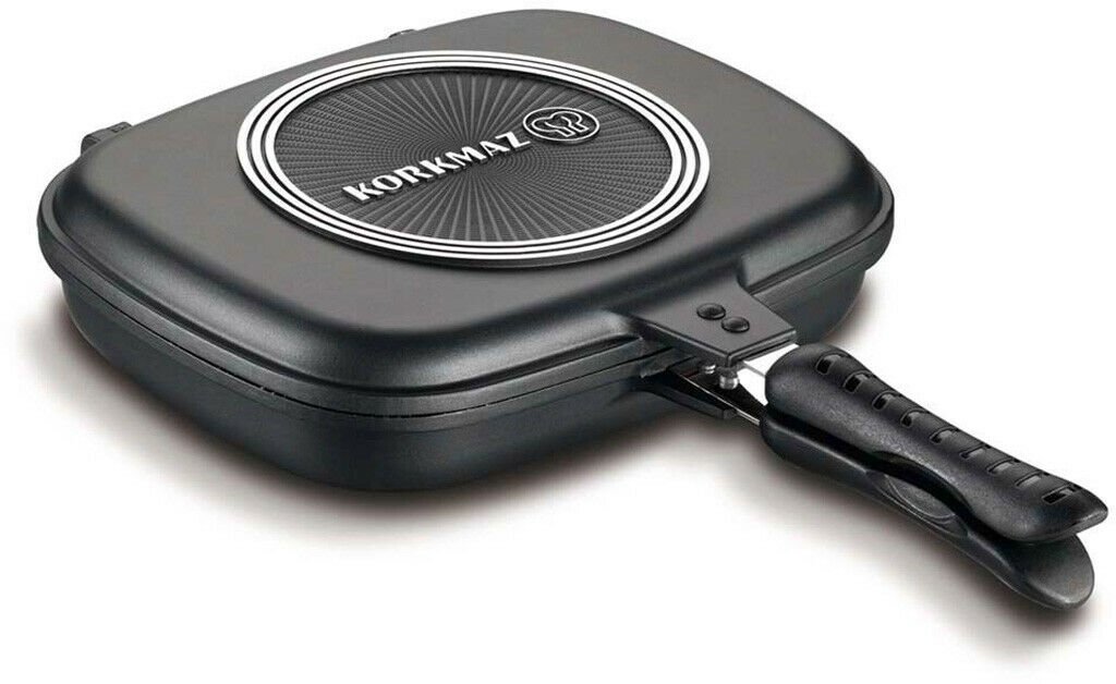 3- Korkmaz Duplo Granit Kapaklı Izgara Tava | Siyah | A1467